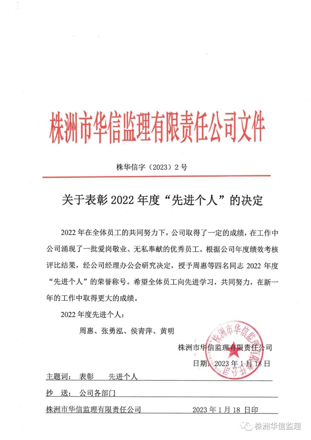 關(guān)于表彰2022年度“先進個人”的決定